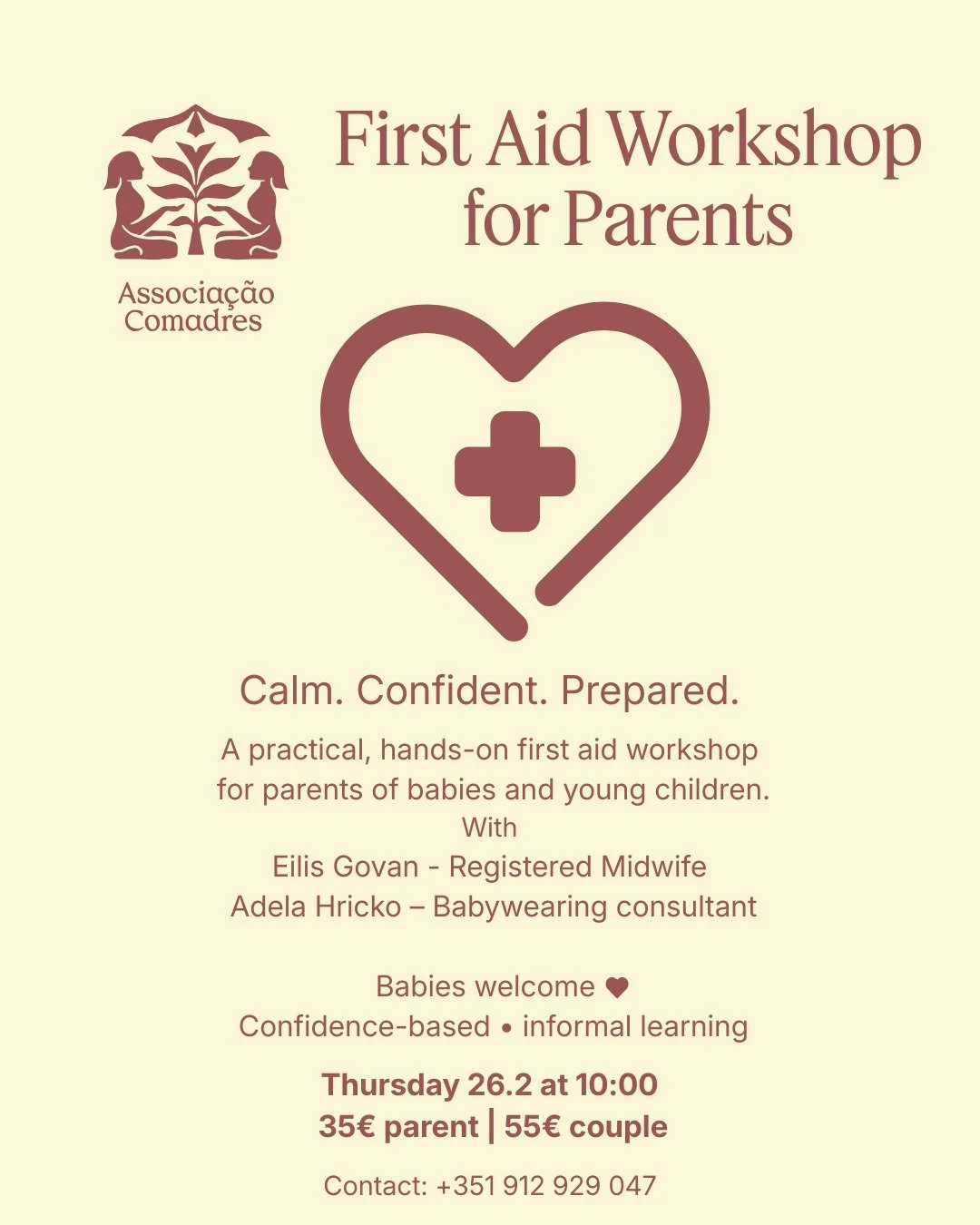 Join Registered Midwife Eilis Govan (Journey of Parenting) and Adela Hricko (Fina Sol Babywearing) for a practical, hands-on first aid workshop designed for parents and caregivers of babies and young children.
