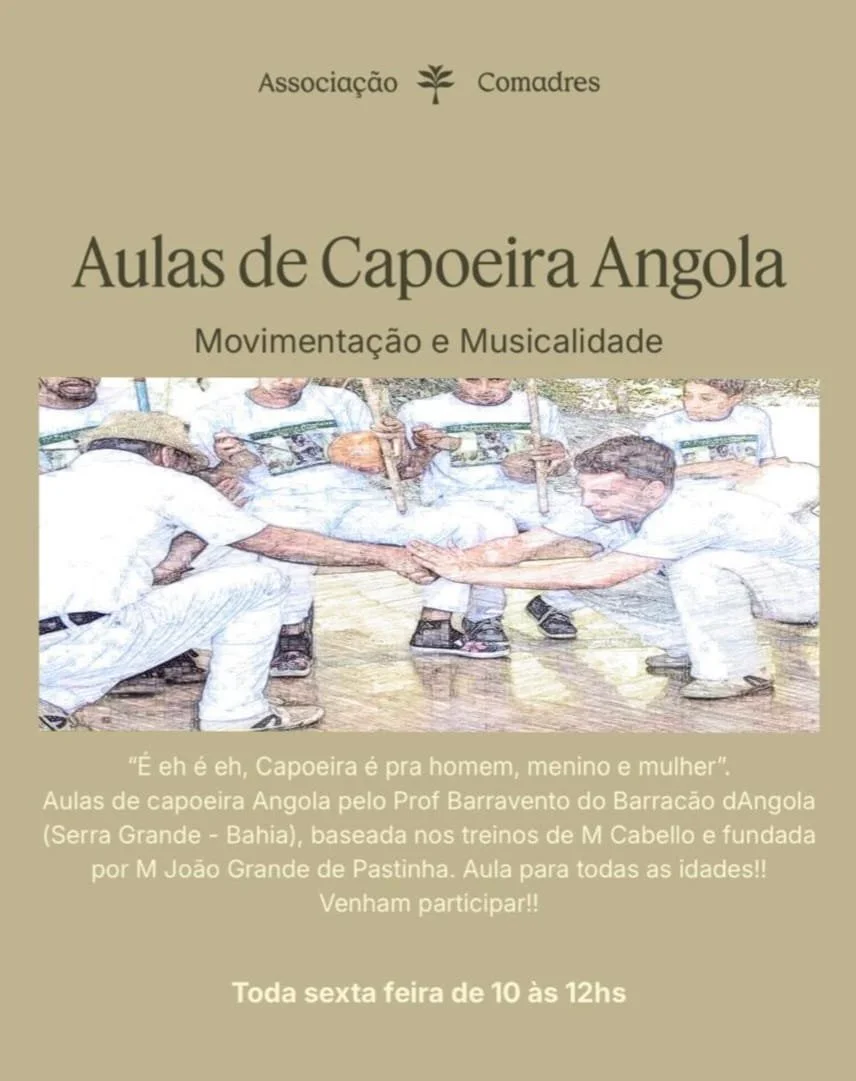 Capoeira Angola is an Afro-Brazilian tradition that combines fighting, dance, music, and ritual. It is characterized by a slower, low-to-the-ground style of play based on cunning, strategy, and bodily dialogue. It is performed in a roda (circle) to the sound of the berimbau, pandeiro, and atabaque, maintaining a strong connection to African ancestry and a culture of resistance. More than a fight, it is an expression of art, history, and community.